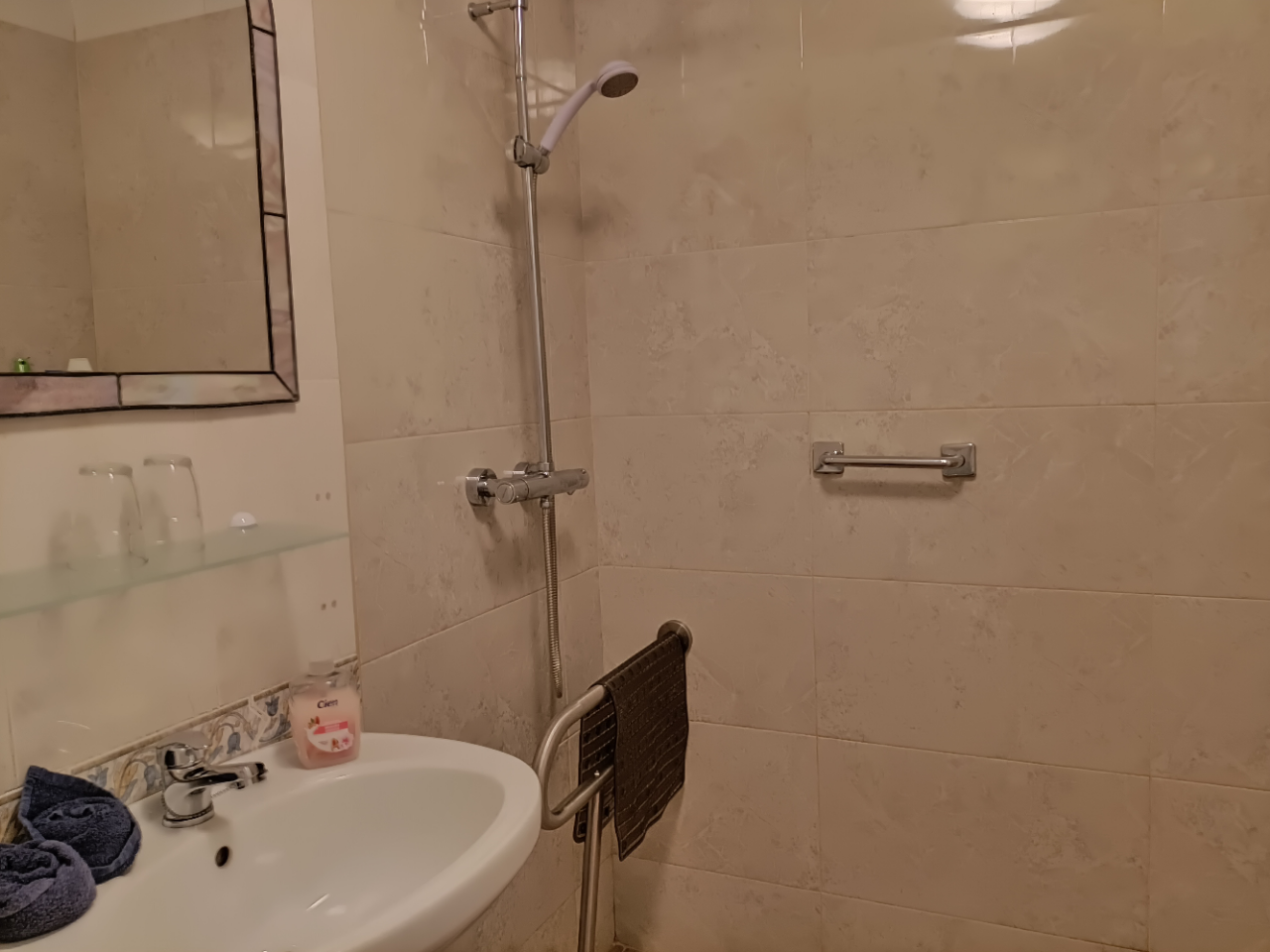 Dies ist ein liebevoll eingerichtetes Appartement. Bestens gepflegt und 2024 voll renoviert incl. aller Möbel und E-Markengeräte. Wintergarten + 40 qm Terrasse mit schattengebenden Markisen überdacht. Wohnzimmer mit Essbereich neben der Küche. Überdachter Abstellraum. Es gibt einen separaten Schlaf und Badbereich mit 2 Schlafzimmern.